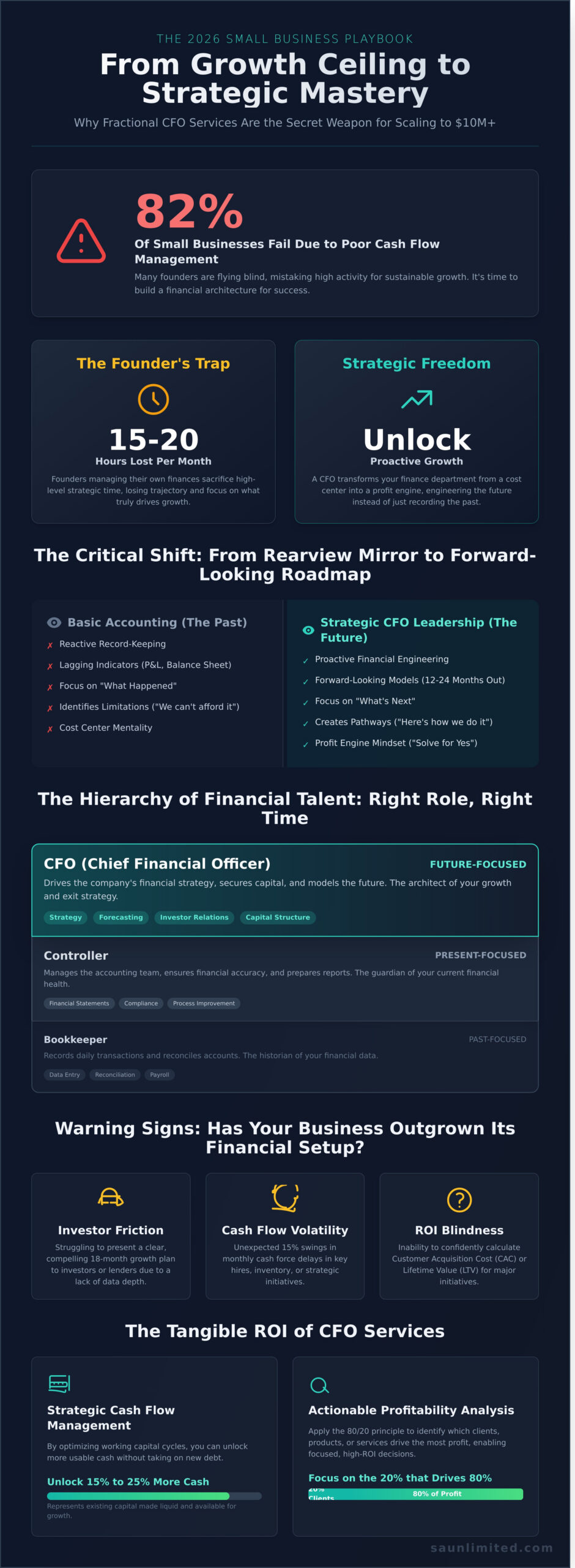 What if the invisible ceiling holding your company back isn’t your sales team, but a lack of high-level financial architecture? According to data from U.S. Bank, 82% of small businesses fail due to poor cash flow management, yet many founders continue to fly blind. You know the frustration of high activity paired with stagnant revenue. It’s the anxiety of not knowing if your cash runway lasts six months or six weeks; it’s the stress of walking into investor meetings without clean, actionable data. At SA Unlimited, we believe your ambition deserves better than “good enough” accounting. This is why cfo services for small business have become the secret weapon for founders who refuse to settle for mediocrity.